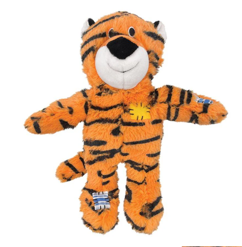 The KONG Wild Knots Tiger is the perfect mix of snuggly and strong, featuring a soft plush exterior with an internal knotted rope core for long-lasting fun. Built to satisfy natural chewing instincts, it squeaks, crinkles, and keeps playtime exciting while still being perfect for cuddles between adventures.